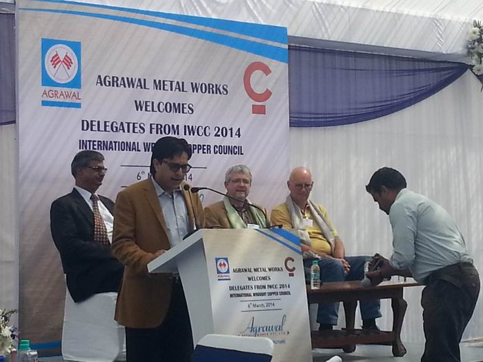 2014年IWCC技術年會現場 本次年會主題為“軋制板帶材及其他產品”,圍繞印度銅板帶材的鑄造、軋制、熱處理以及銅帶的電鍍等技術展開交流,會議期間各國銅加工企業還就當今行業中最新的銅加工技術和科技新產品進行了研討。參會代表們參觀了印度生產板帶材產品的企業:Rashtriya板帶廠、梅塔銅管廠和阿哥拉瓦爾五金廠,紫銅/黃銅汽車散熱器廠和黃銅鎖鑰廠,充分展示了印度軋制板帶先進的加工工藝。